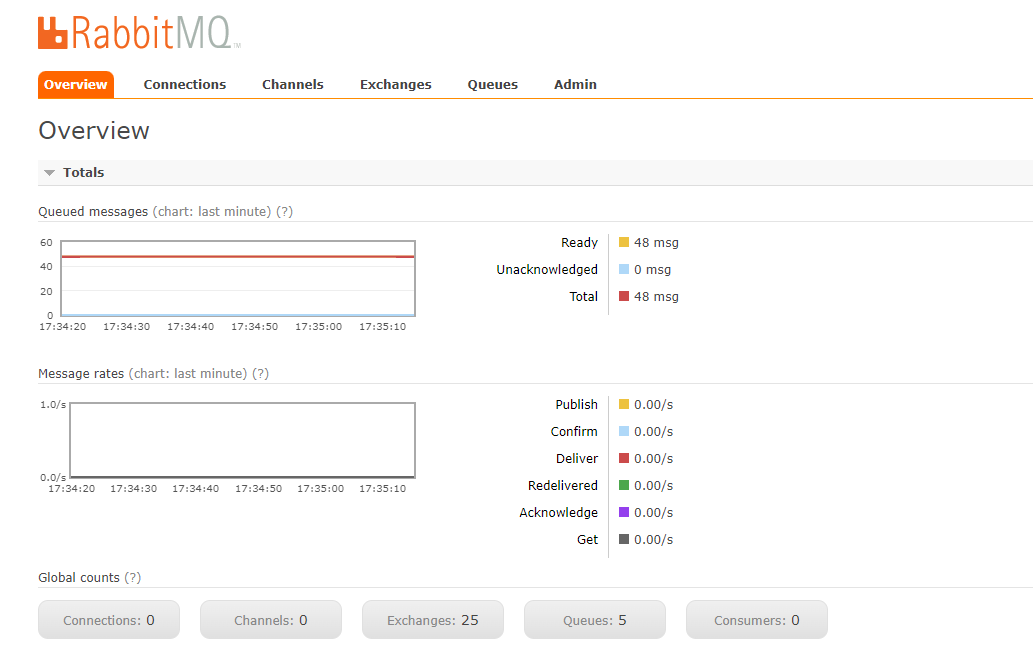 RabbitMQ가 제공하는 Management UI를 통해 연결과 메시지를 관리할 수 있다.