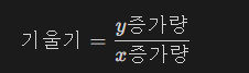 이러한 순간 변화율을 미분계수라 부르고 쉽게보면 두 점 사이의 기울기이다. 기울기는 y 증가량을 x증가량으로 나눈 것을 뜻한다.