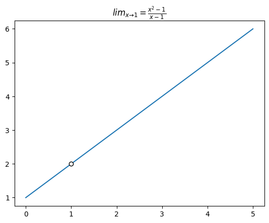 plt.title(r'$lim_{x \\to 1} = \\frac{{x^2 - 1}}{{x - 1}}$')