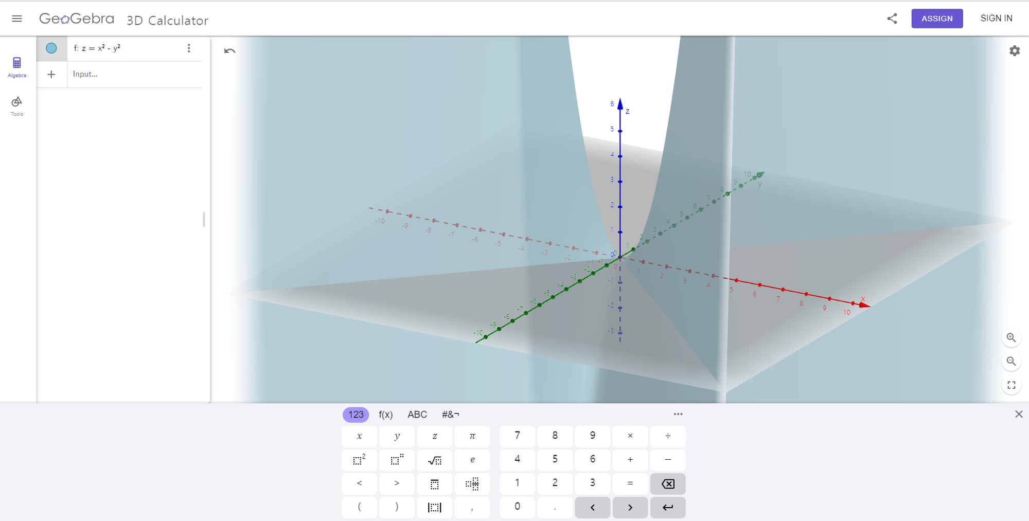 z = x**2 - y**2