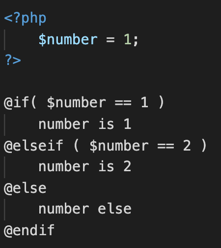 예를 들어 number라는 변수의 값이 1이 아닌 3일 경우, if조건을 충족하지 못한다. 그렇기 때문에 다음 조건문은 elseif로 이동하여 조건검사를 진행하게 된다.