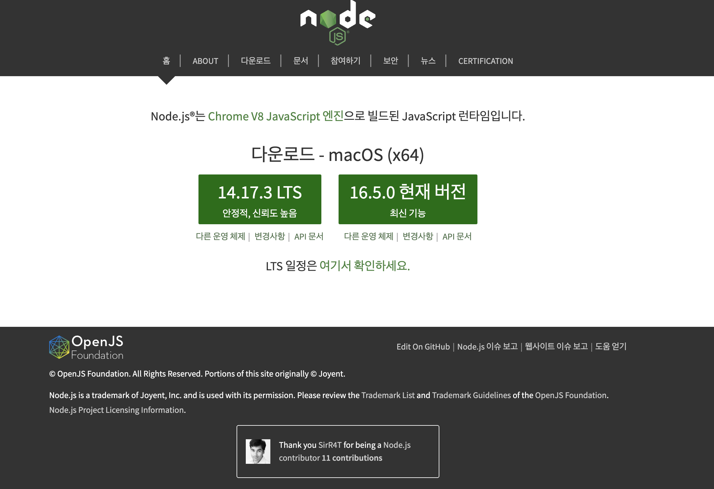 그렇기에 안정적으로 LTS버전을 사용하는 것을 추천한다.