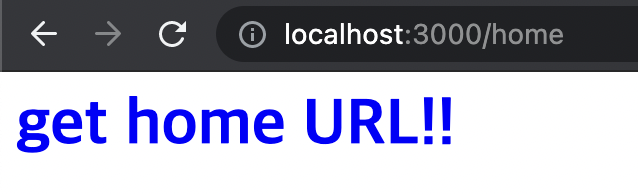 현재 html문서와 연결시키지 않았기 때문에 단순히 화면에 get home URL!!이라는 문구가 나오게 된다.