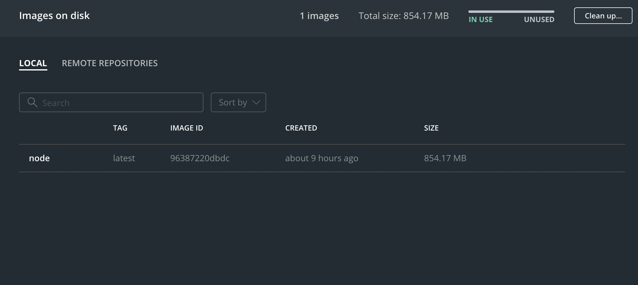 docker pull 을 통하여 이미지가 설치되면 도커 이미지 탭에서 설치된 이미지 목록들을 확인할 수 있다.