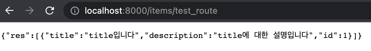 SQLAlchemy ORM을 통해 Test모델의 모든 데이터들을 가져오는 구문을 만들었다. db.query에 Test라는 모델명이 들어간 이유는 해당 모델을 바탕으로 상속된 DB 테이블의 데이터를 가져오거나 변경한다는 것을 의미한다.